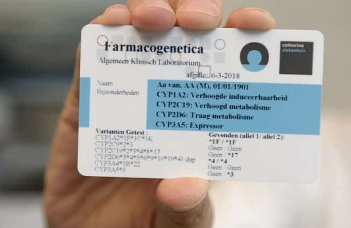 Aan de hand van een buisje bloed- of speeksel wordt in het laboratorium een zogenoemd DNA-paspoort opgesteld. Op zo’n kaartje staat het farmacogenetisch profiel dat aangeeft hoe het lichaam reageert op verschillende medicijnen. “Op grond daarvan kan een specialist beter persoonlijk gerichte medicijntherapie voorschrijven. Zo kan de dosering worden verhoogd of verlaagd of moet er juist een alternatief middel worden voorgeschreven”. “We werken hierin nauw samen met de apotheek.”