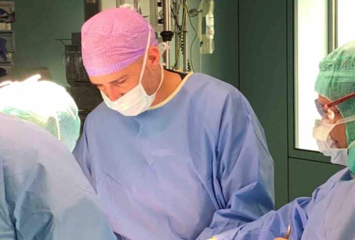 Foto: Chirurg James van Bastelaar aan het werk met de nieuwe darmstapler.