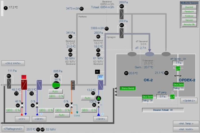 In het Flevoziekenhuis heeft Kieback&Peter naast de redundante regelsystemen een OK-monitoringsysteem geleverd. Dit overkoepelde OK-monitoringsysteem is een volledig gescheiden monitoringsysteem, ontwikkeld en geleverd door Kieback&Peter. Het OK-monitoringsysteem is uitsluitend bedoeld voor het monitoren, met als doel: onder alle omstandigheden kunnen aantonen dat de installaties doen wat zij moeten doen, op elk tijdstip van de dag, 24/7.