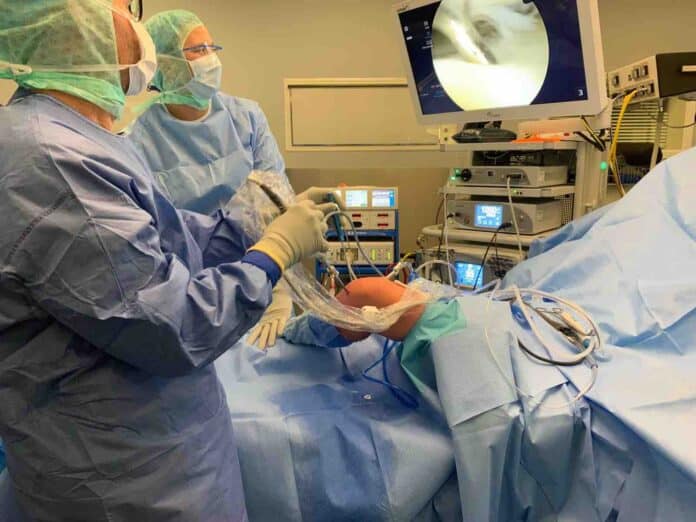 De nieuwe techniek voor het via een kijkoperatie terugplaatsen van het kraakbeen hebben Jacob Caron en zijn collega Chris van den Broek in Berlijn geleerd, van kniespecialist Tobias Jung. Caron: “Na het maken van kleine sneetjes in de knie druppel ik de bolletjes kraakbeen via een minuscuul rietje terug in de knie. Die bolletjes kleven vanzelf aan het schoongemaakte kraakbeendefect. Daarna vloeien de druppeltjes in de warme omgeving van de knie als spiegeleieren uiteen. De twee belangrijkste voordelen van een kijkoperatie ten opzichte van een traditionele open operatie zijn minder pijn voor de patiënt en een sneller herstel. Patiënten kunnen direct na de operatie de knie buigen en strekken, maar de mate waarin wordt in de loop van zes weken verder opgebouwd.”