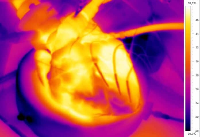 Fotobijschrift: Gekoeld hart (donkere gedeelte is koeler)